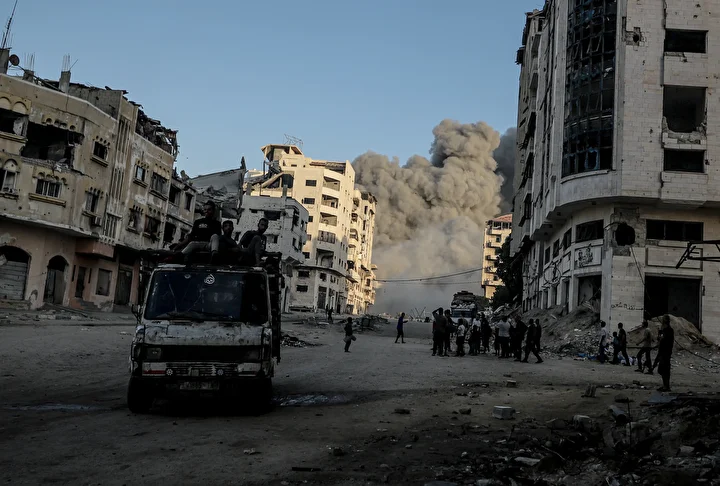 İsrail savaş uçakları, Filistinlileri güneye sürmek için Gazze kentinde özellikle çok sayıda ailenin yaşadığı çok katlı yüksek binaları yıkmaya devam ediyor.
