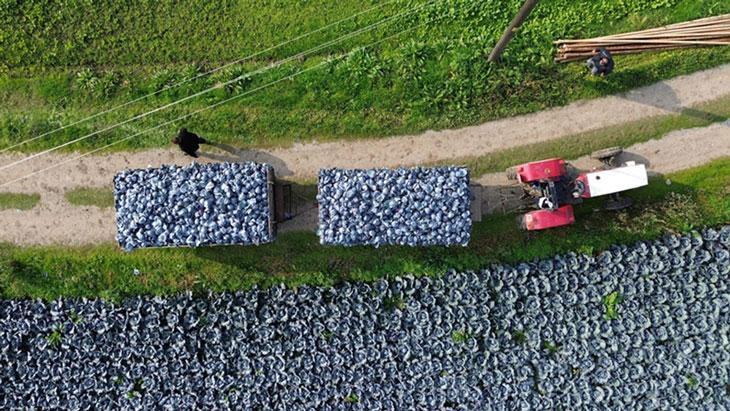 Bafra Ziraat Odası Başkanı Osman Tosuner, AA muhabirine, Bafra Ovası’nda 22 bin 500 dekar alanda kırmızı lahana tarımı yapıldığını söyledi. Kırmızı lahanada hasadın başladığını belirten Tosuner, “Dekar başına 5 ila 6 ton verim alınıyor. Ürünün bakımına göre bu değişiyor ama 5 tonun altına pek düşmüyor.” dedi.