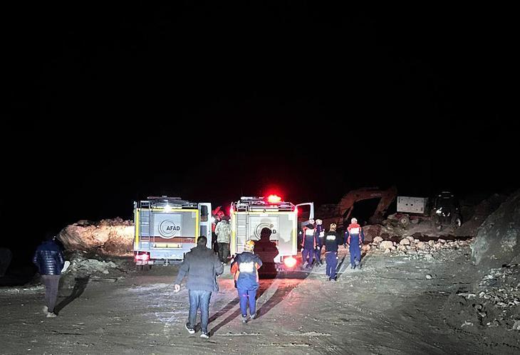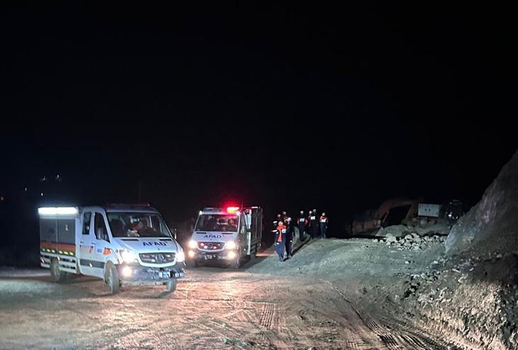 Toprak kayması devam eden bölgede, ekiplerin arama ve kurtarma çalışması devam ediyor.