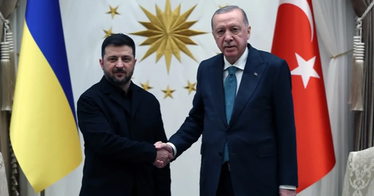 Türkiye ve Ukrayna bayrakları önünde basın mensuplarına poz veren Cumhurbaşkanı Erdoğan ve Ukrayna Devlet Başkanı Zelenskiy, daha görüşmelerini gerçekleştirmek üzere Cumhurbaşkanlığı Külliyesine geçti.